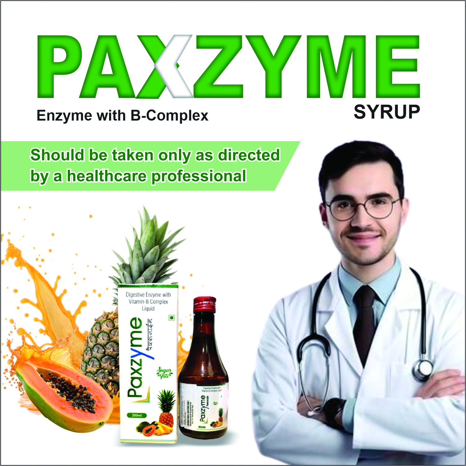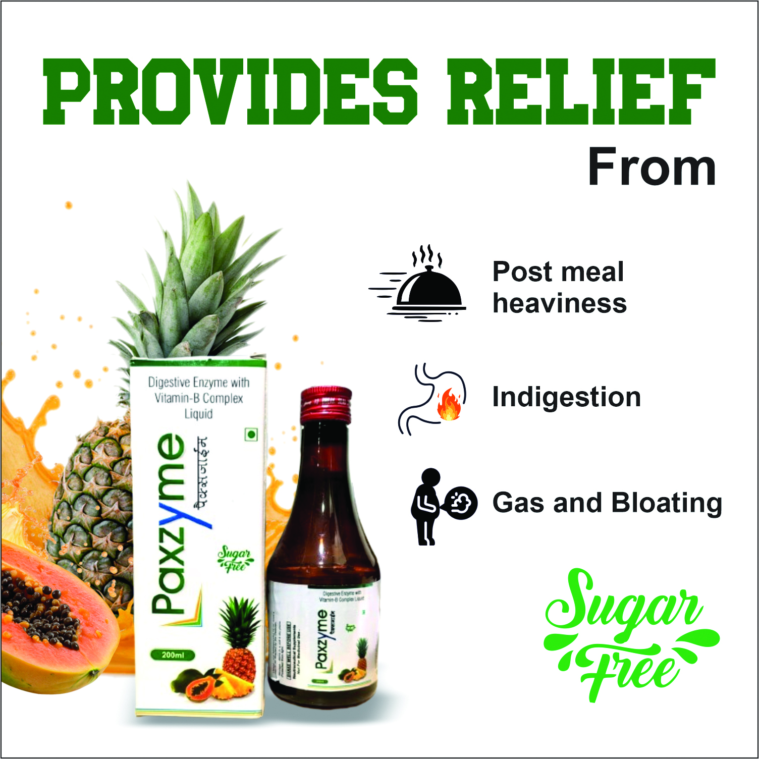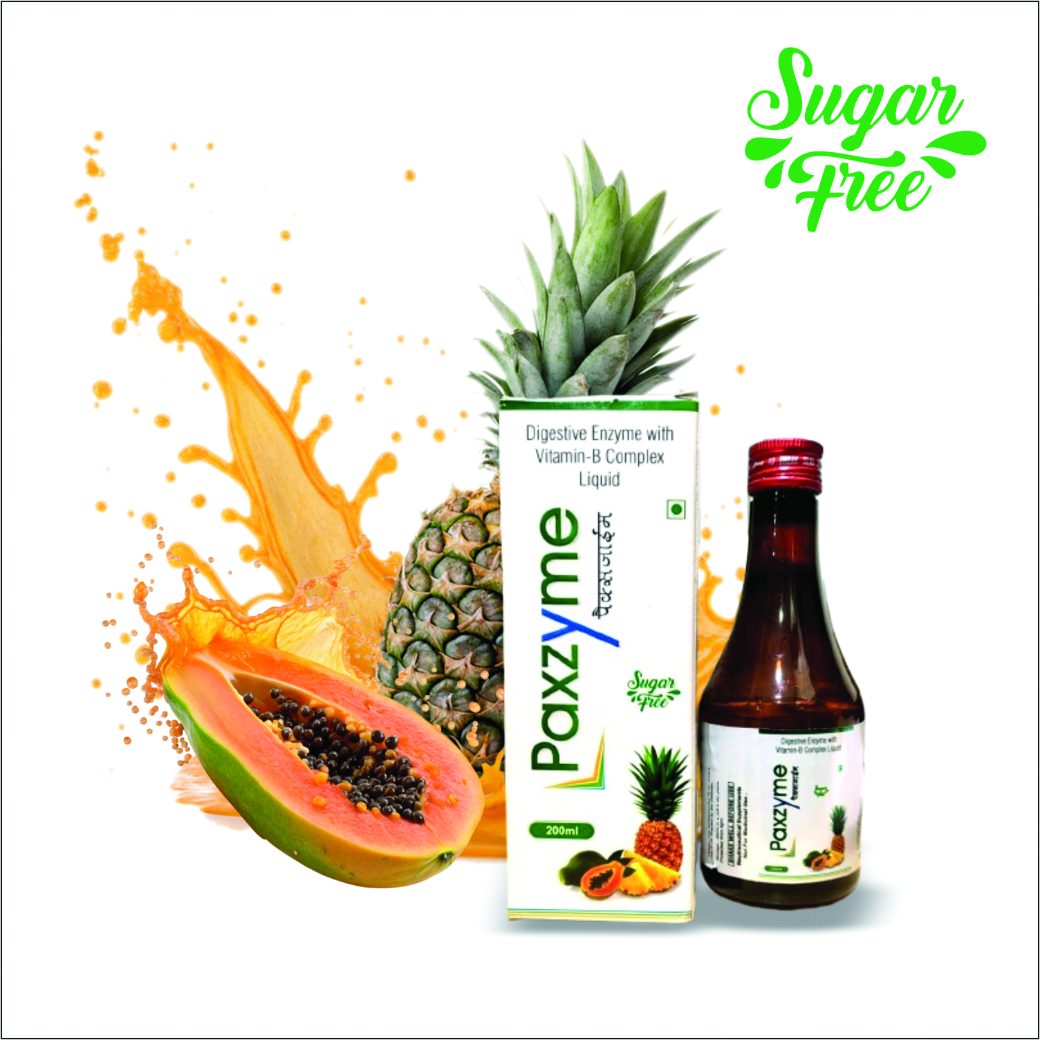 | Enzyme with B Complex Digestive Enzyme Syrup for Post-Meal Comfort, Bloating Relief & Healthy Digestion,Paxzyme Syrup- 200ML Sugar Free Pineapple Flavour |